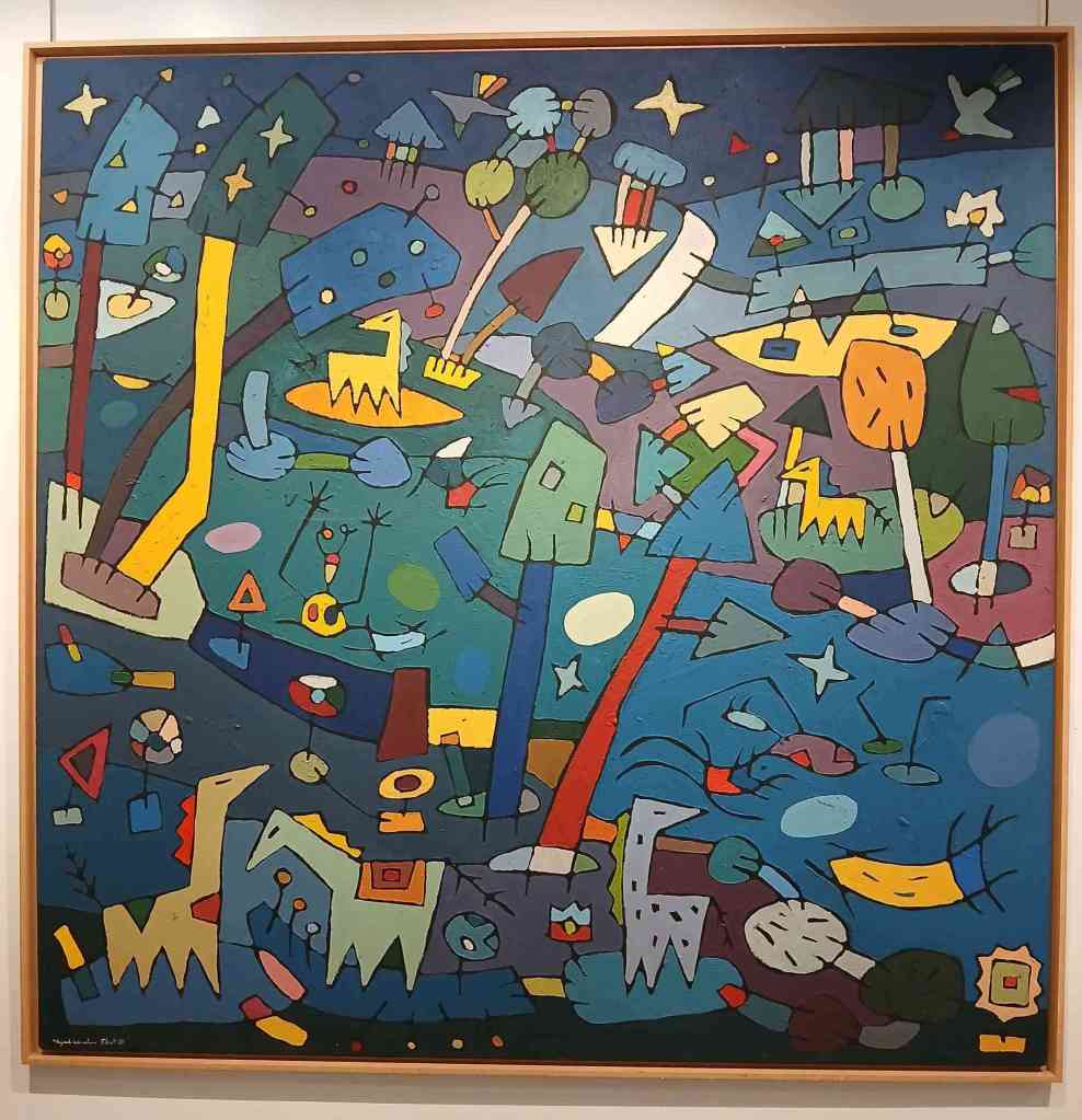 Precioso cuadro original de Jorge Peteiro,«Segundo baño nocturno, Peteiro 91» de gran tamaño, 195 cm, tamaño mural, óleo/lienzo. Propio de su época en Norteamérica, con personajes y temática propia del universo de Peteiro, con una descripción subjetiva, pero diferente a lo habitual en su época posterior. Es frecuente la corriente de considerar al autor creador de una corriente y estilo propio, ansiado por los coleccionistas de sus obras.